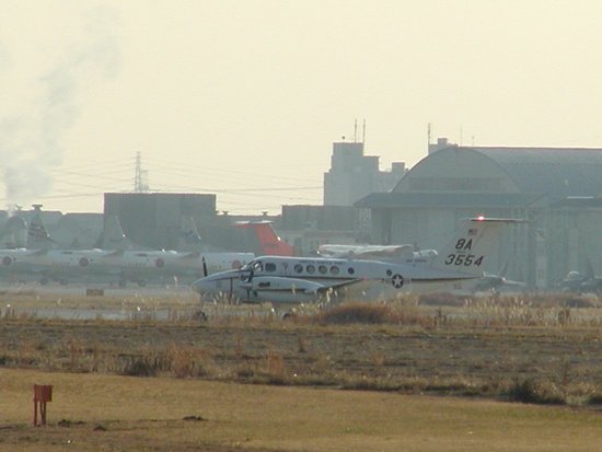 多分、こいつのメーカーはセスナ社だったような気がします。後ろにP-3CとUS−1が見えますねぇ。 |