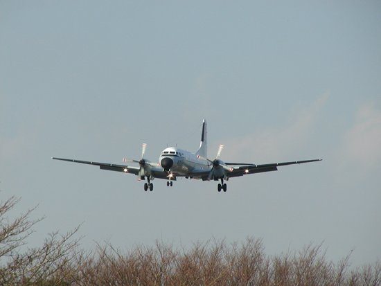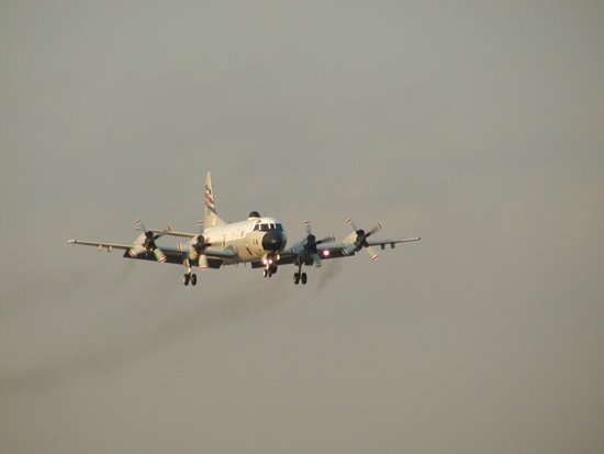 P-3C哨戒機、今日は一回しか見ることがありませんでした。おそらく朝に出発して帰ってきたのでしょう。長時間お疲れ様〜。 |