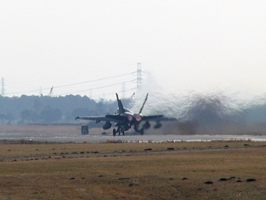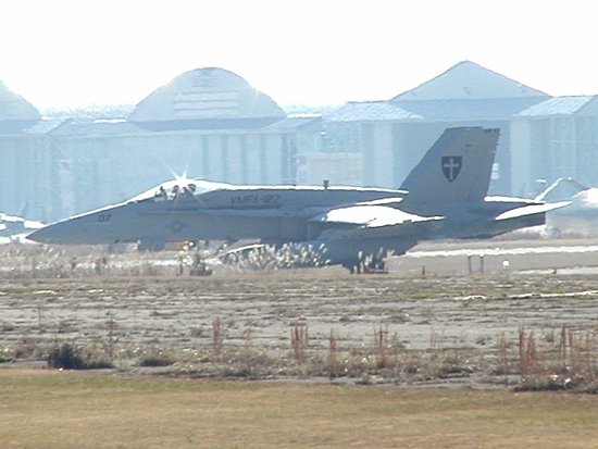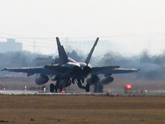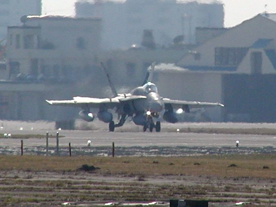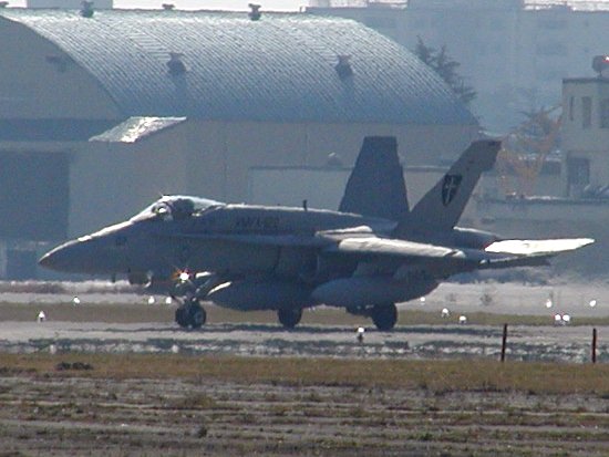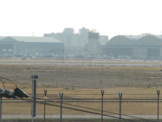 ちょーっと見にくいですが、CVW-5の戦闘機がズラリ並べられております。おそらく日本の基地で一番強力な航空団でしょう。 |