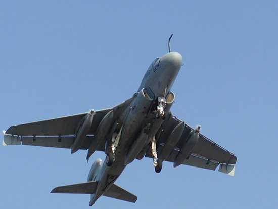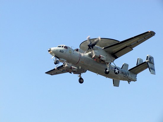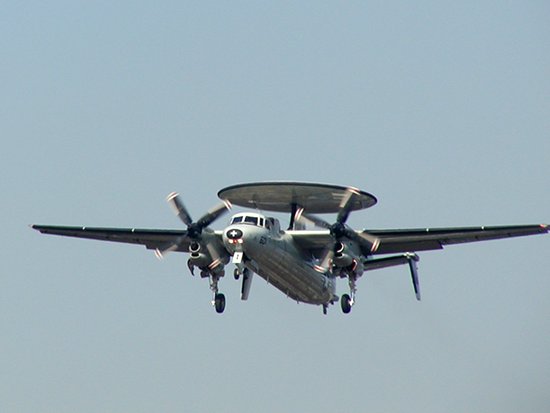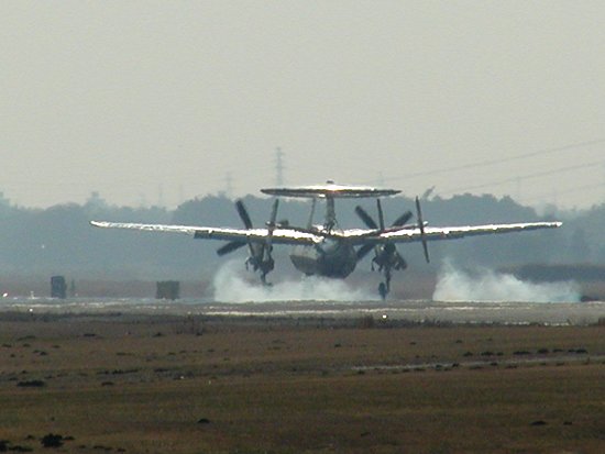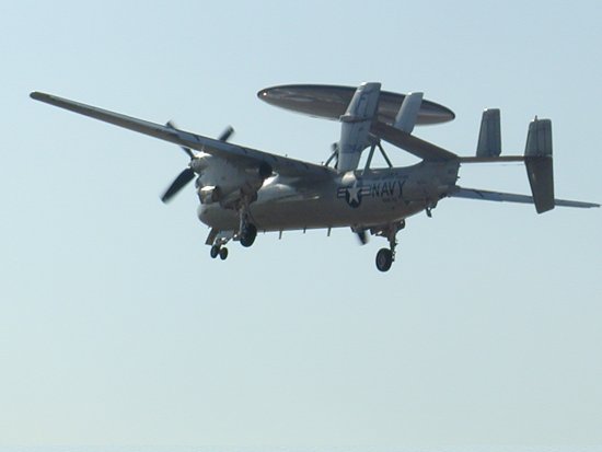 VAW-115-LIBERTY BELLS-のE-2Cホークアイ早期警戒機 どこからともなくやってきて何度かタッチアンドゴーを行いました。 |