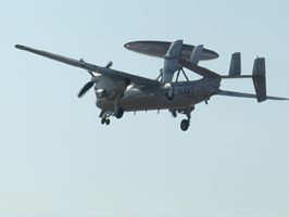 VAW-115-LIBERTY BELLS-のE-2Cホークアイ早期警戒機 どこからともなくやってきて何度かタッチアンドゴーを行いました。 |